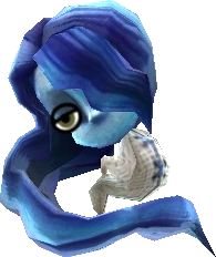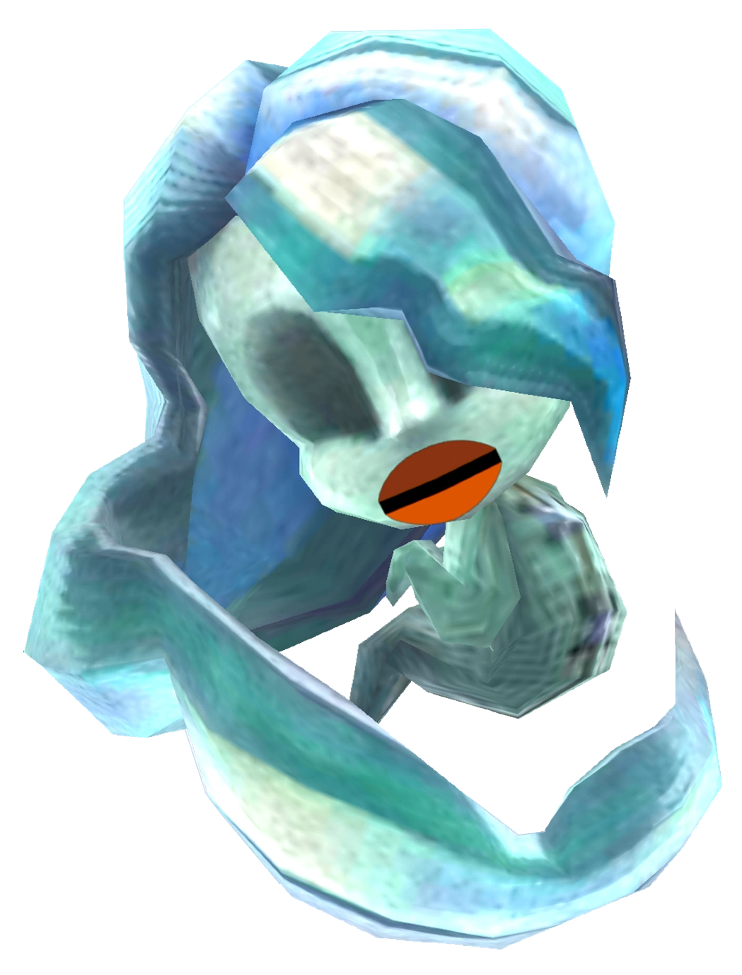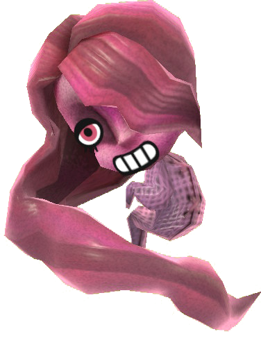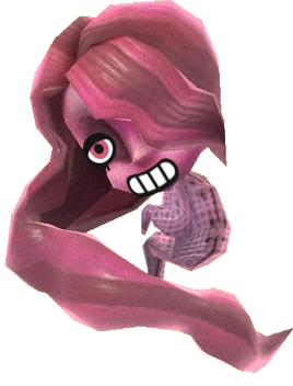 The Bansheevil looks exactly like a Banshee except for its pink skin and purple hair. Its "clothed" body appears to have a purple tint. Under Dark Lord's control, two Mii eyes and a mouth are attached to its face.