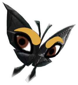 Like all butterfly-based monsters, the Black Butterfly is a crystalline butterfly with Mii features attached to it. As its name suggests, it is colored black. Its Mii features consist of a pair of eyebrows and eyes.
