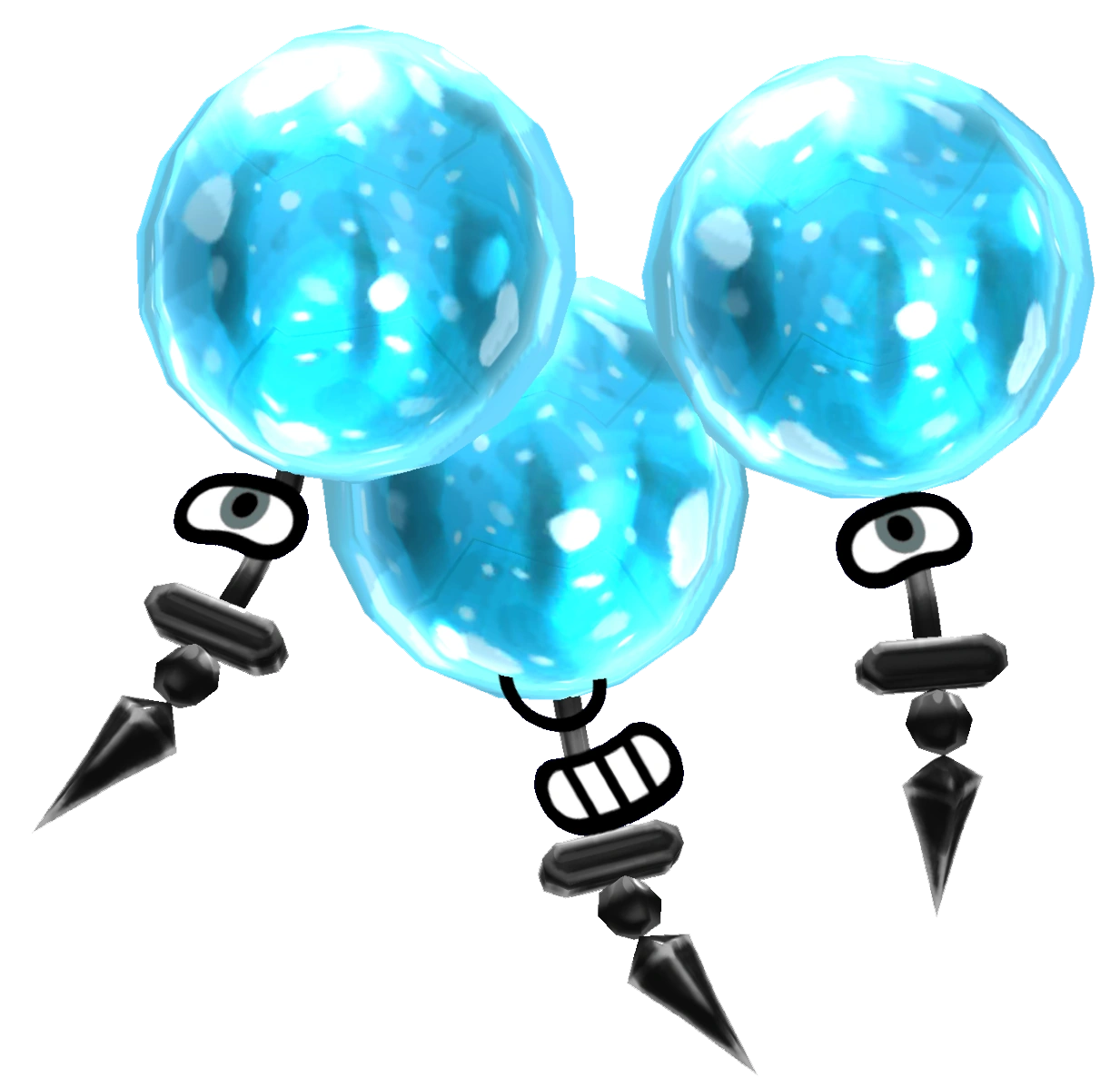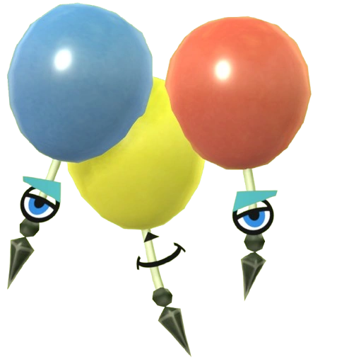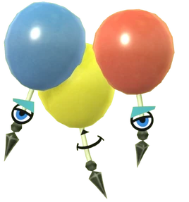 The Bloon Loon Loon consists of three balloons, each differently colored (blue, yellow, red). The strings on the blue and red balloons have a Mii eyebrow and eye each, while the string of the yellow balloon has a Mii nose and mouth attached to it. Like all "thorn"-based monsters, this monster has black spikes at the end of their strings.