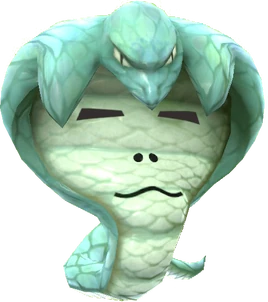 The Blue Cobra is a considerably large, cyan-colored snake that looks unmistakably like a cobra. It has a pair of Mii eyebrows and a nose and mouth located on the inside of its hood.