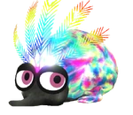 The Boss Snurp is a gigantic Snurp with purple and blue glossy, glitter-like fur. The fur changes color depending on the color of the hexagons in the background. It also sports five rainbow feathers in a crown shape, distinguishing it from the rest of its kind and giving a carnival mask appearance. A pair of Mii eyes is what ends up on this monster.
