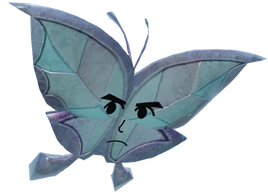 It is a huge silver crystalline butterfly with the Carefree Guide's face attached to its front. It's bigger compared to the Rock Moths found in the area it appears in.