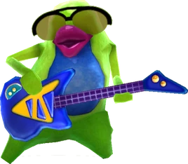 The Doo-Whopper (Japanese: ギターマスター Guitar Master) is a monster in Miitopia, as well as the strongest variant of Rock Hopper. It is found in New Lumos, as well as several one-time dungeons during a level 50 quest. Its main gimmick is exciting Mii characters, giving them effects like Hyper Sprinkles.