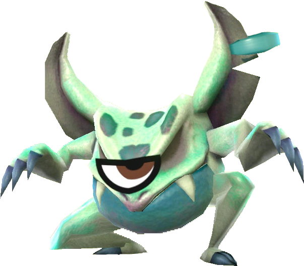As it is a stronger Hobgoblin, it is physically identical, except that its ear ring is on its left ear and the creature is a murky cyan. The Mii part attached to it is a single eye. They only appear with this one kind of Mii eye, and it will always be the same color.