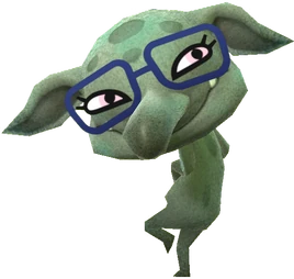 Being a variant of a Goblin, the Mage Goblin is a short creature with pointy ears, a big nose and two exposed lower fangs in its mouth. Mage Goblins are grayish teal with dark teal spots on their head and back. In addition to the Mii eyes also possessed by other Goblins, Mii glasses are also attached to this monster.