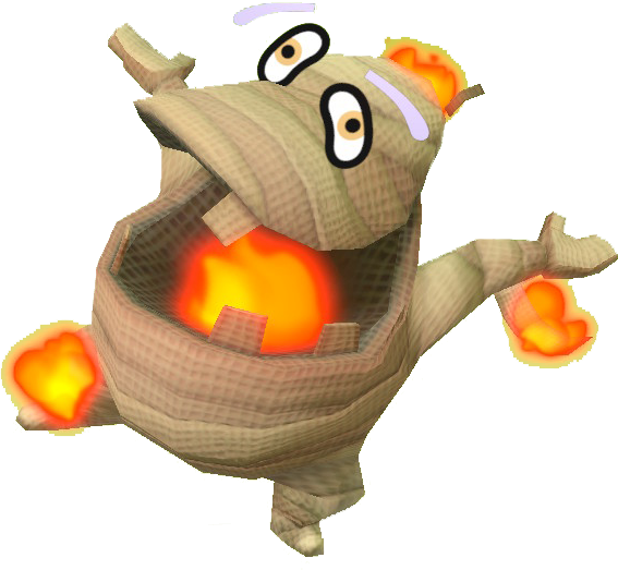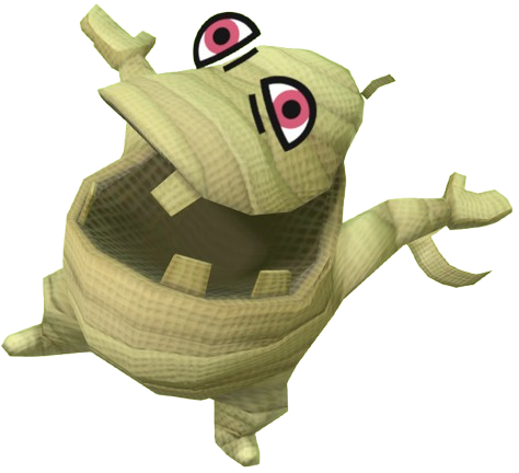 Moldy Mummies (Japanese: ドロドロマミィ Mushy Mummy) are mummies found in New Lumos's 4th District and in temporary dungeons. These enemies are infamous for their ability to steal weapons much like other mummies and their magic attack dealing a surprisingly high amount of damage. The coloring of Mummy Jerky ★★ is based off of Moldy Mummies.