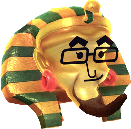Pharaoh "Genie" is a giant gold disembodied head of a pharaoh with a black beard. It dons a pharaoh headdress that has green stripes on it and wears a pair of red earrings. This is the monster where the Genie's face ended up attached to for the first time.