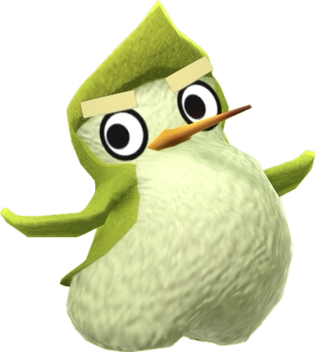 It resembles a rounded penguin with a pointed pompadour. It has a yellow hide and white underbelly with barely visible webbed feet. Like all Pengies, it has a large spear-like beak which happens to be its only weapon in battle, however, the Punk Pengies have orange beaks while a Pengy's beak is yellow. Its Mii face is two eyes along with two eyebrows on its face. In its idle animation, it will tauntingly shake its behind at the player. It is bigger than its other variants.