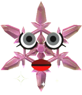 These monsters look like large, pinkish-purple snowflakes with a glass-like sheen to them. There are two Mii eyes and a mouth in the center of the snowflake, forming its face.