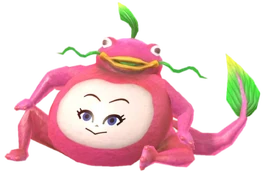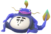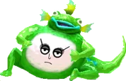 It is physically identical to the first frog, however its skin is pink with a gold mouth and green whiskers and tail fins.